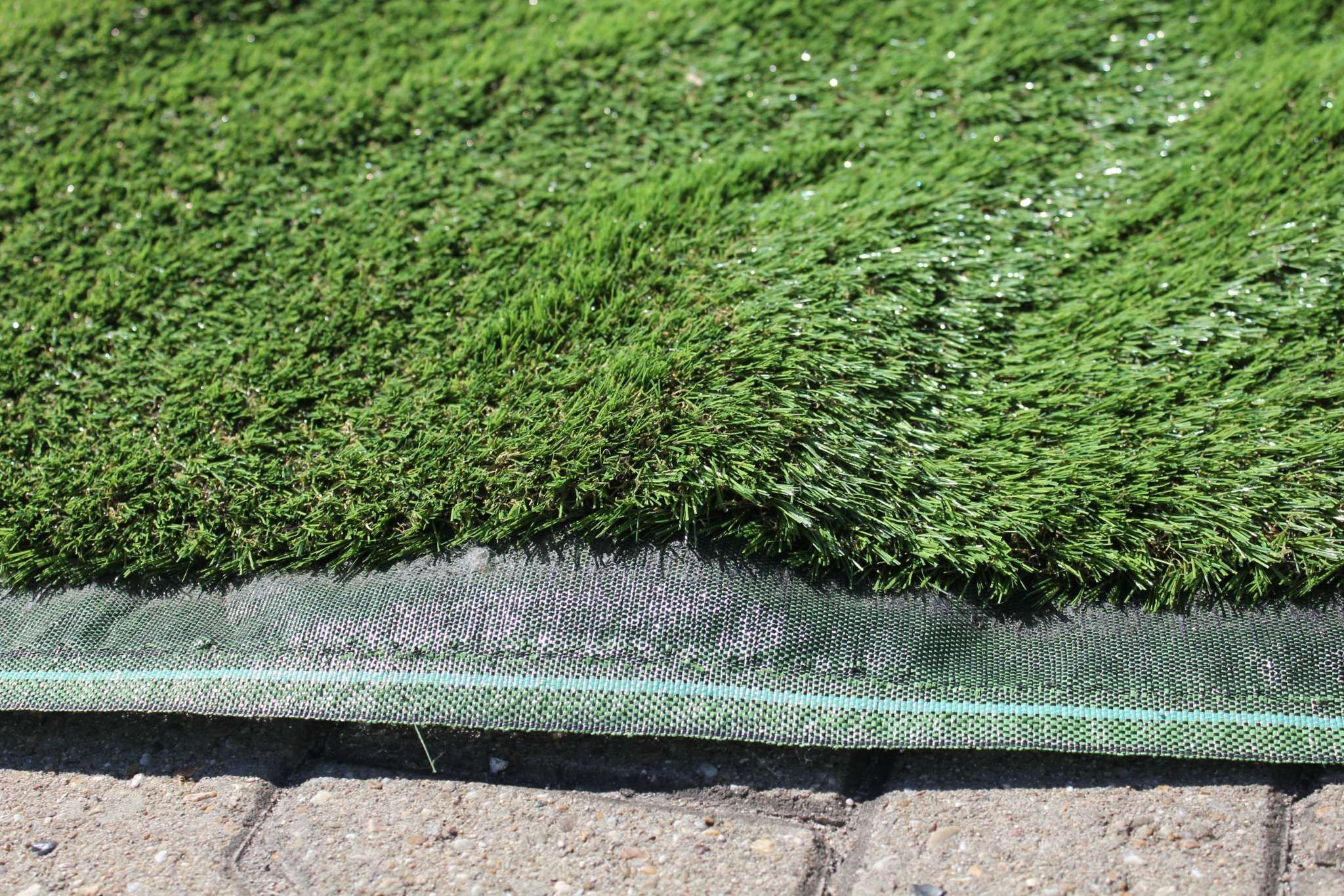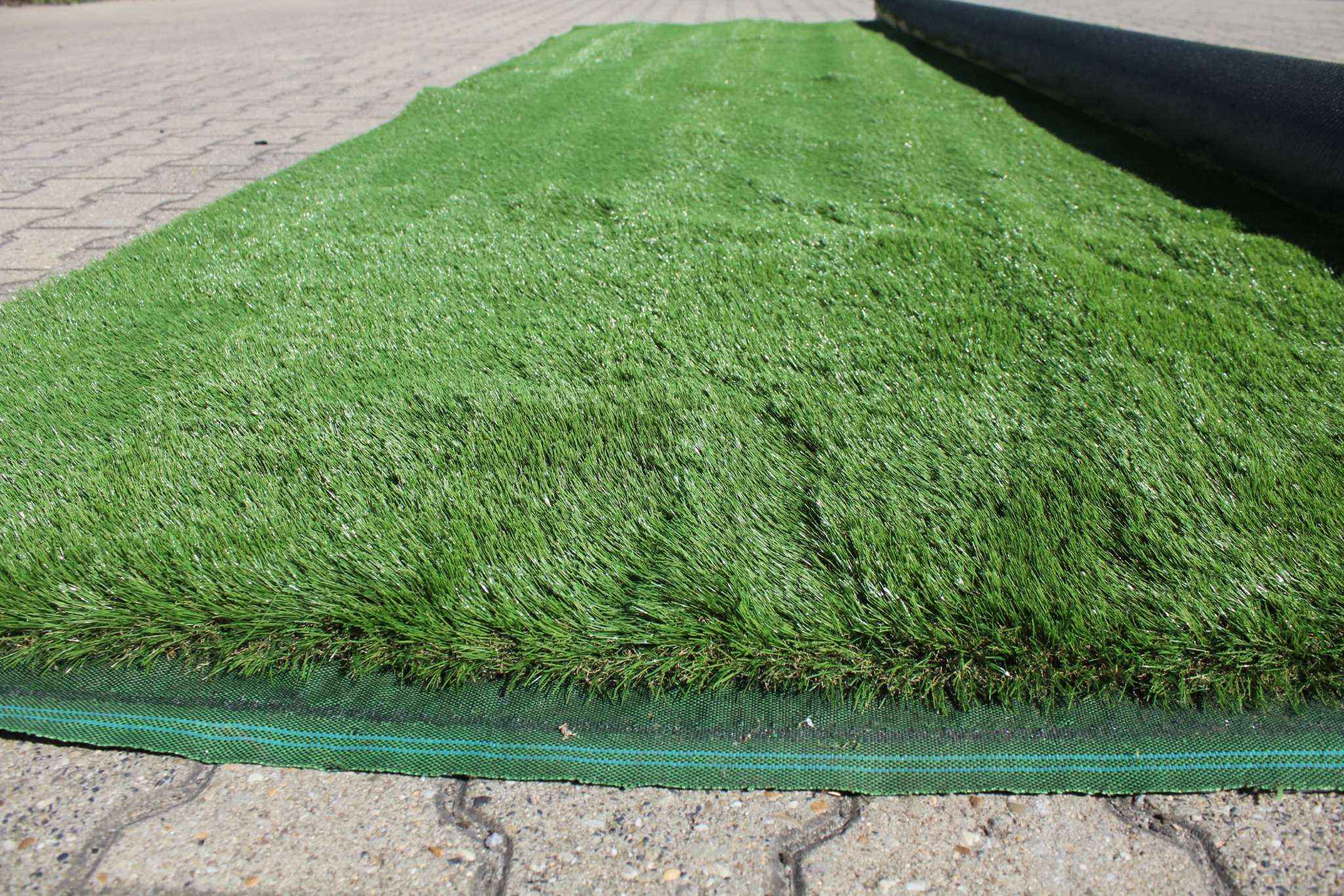 Gebrauchter Kunstrasen mit einem Gewebe oder Dämpfungsschicht lässt sich ganz einfach mit einem Hochdruckreiniger (dank sehr stabilen Sorten) oder Besen von Schmutz befreien. In der Regel durchspült der Regen den Kunstrasen und hält diesen sauber. Drainagelöcher sind im Kunstrasen vorhanden. Der Wasser kann also durch den Kunstrasen abfließen.